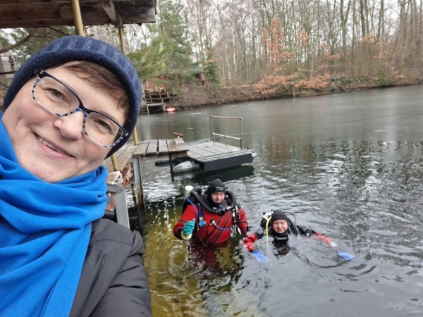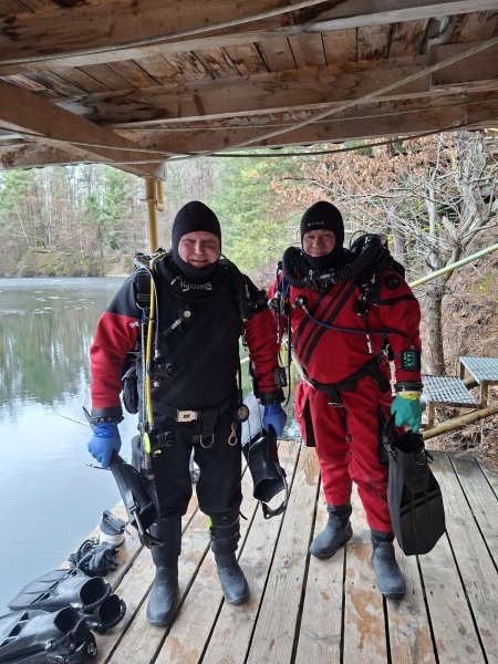 V neděli 22.2. zajeli na potápko na Leštinku Ráďa, Ivča a doprovázela je Martina. Ivča už má srostlá zlomená žebra a chtěl vyzkoušet, jestli se nezapomněl potápět. Lom byl zčásti zamrzlý, ale led rychle tál, protože pršelo. Viditelnost byla mizerná. Po ponoru jsme se stavili na oběd a pak frčeli domů.